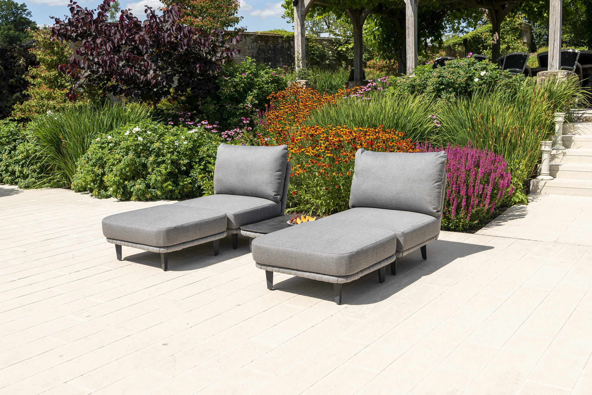 Piękne modułowe siedzenia pozwolą na stworzenie indywidualnego zestawu i dowolne zmienianie kompozycji. Komfort, wszechstronność i funkcjonalność tej kolekcji sprawia, że jest idealny do nowoczesnego życia na świeżym powietrzu. Aluminiowe ramy malowane proszkowo dostępne w dwóch wersjach kolorystycznych. Subtelne, proste wykończenia charakteryzują się klasą i wysoką jakością.