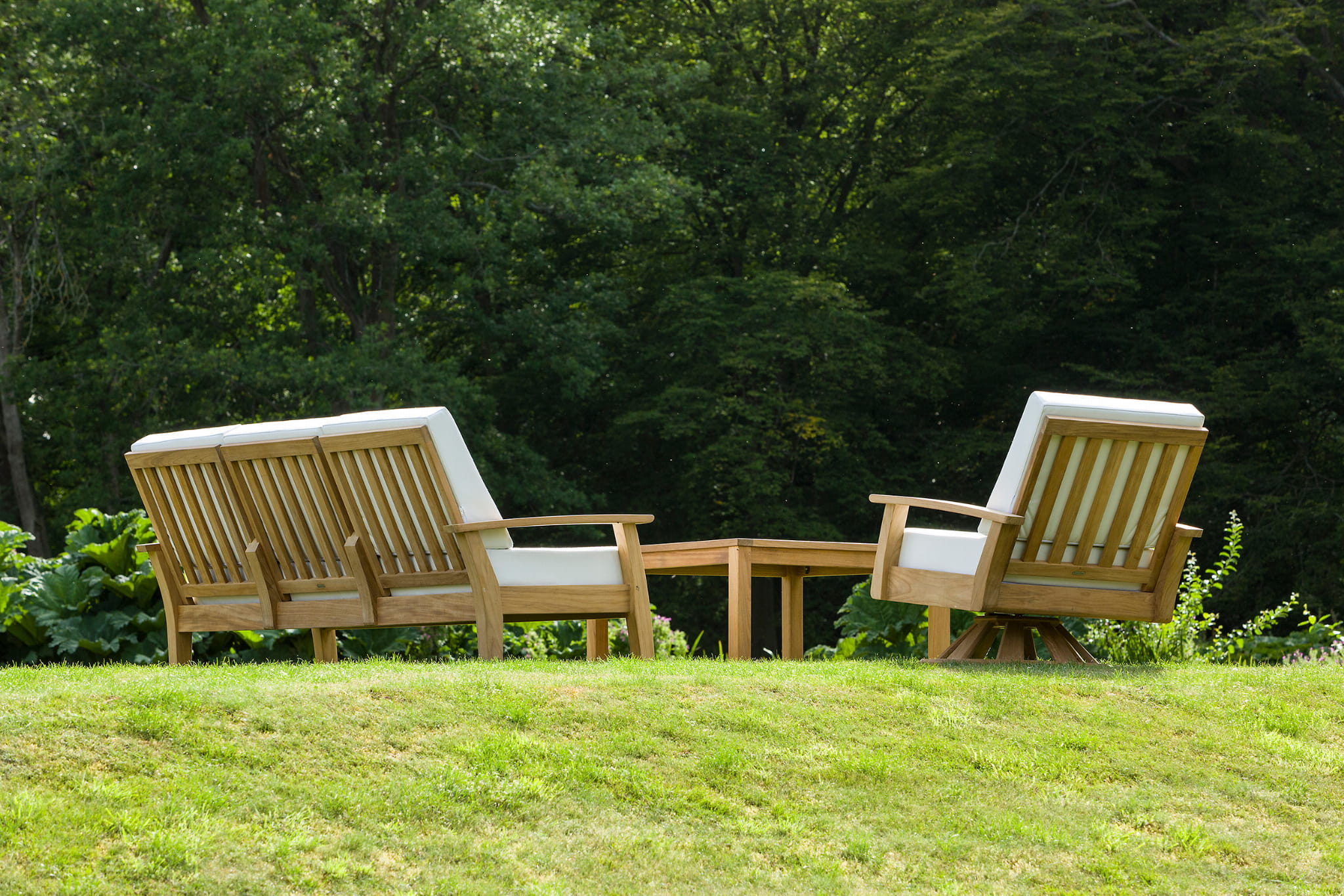 Siedzisko i oparcie: tapicerowane tkaninami Sunbrella® lub Sunbrella Rain® – odpornymi na blaknięcie, wodę i zabrudzenia