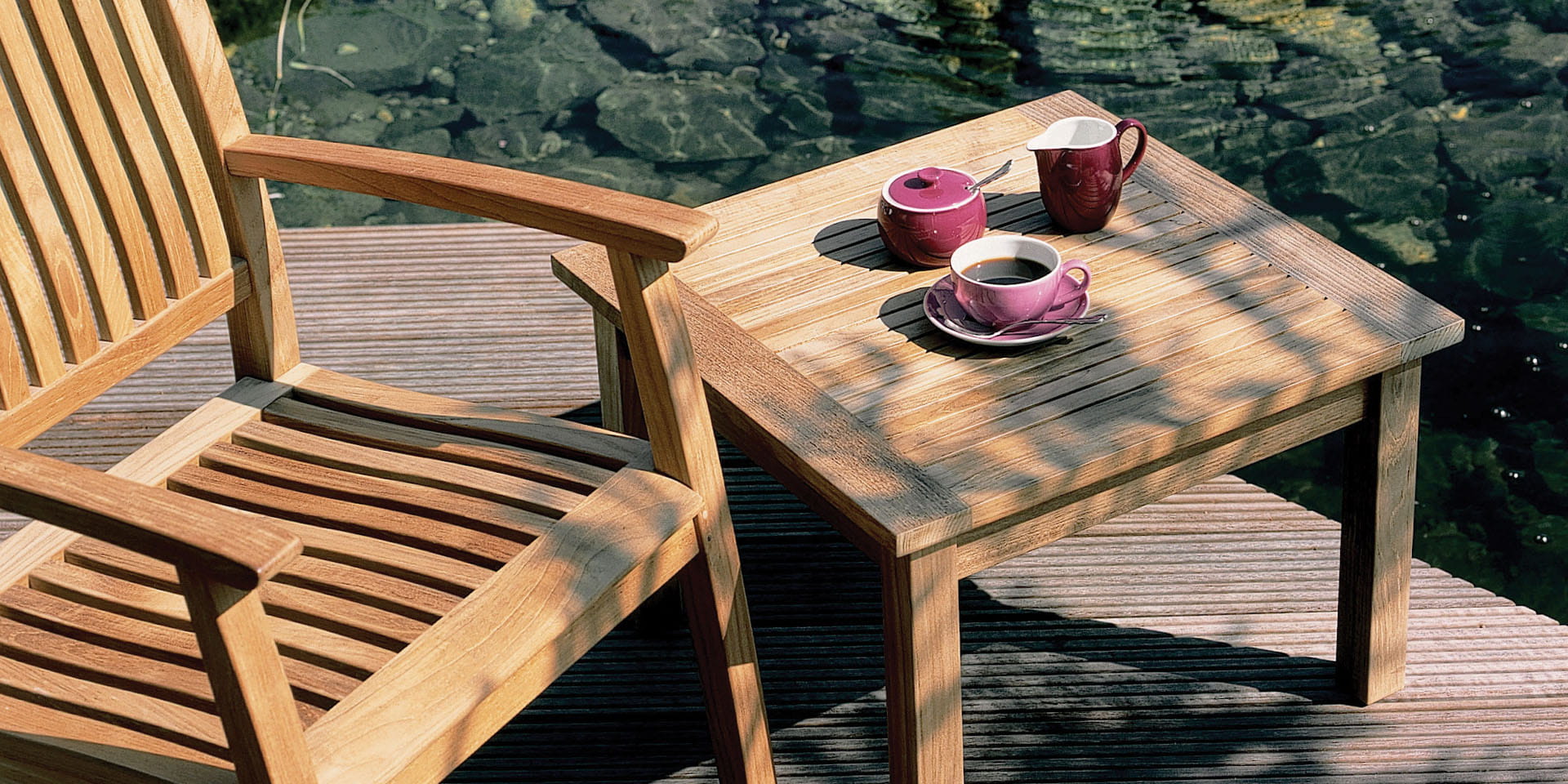 Naturalne drewno tekowe najwyższej jakości. które ze względu na znaczną naturalną zawartość substancji oleistych i kwasu krzemowego nie nasiąka wodą i jest odporne na działanie czynników chemicznych oraz biologicznych(np. termitów).