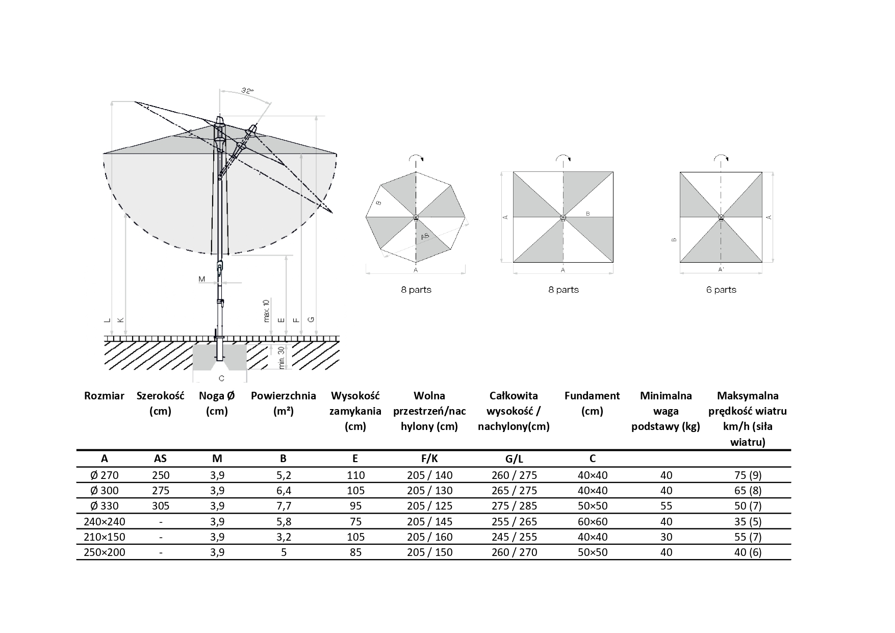UWAGA! Cena dotyczy samego parasola o rozmiarze D270cm w drugiej kategorii materiału. Rozmiar oraz kategorię materiału, można zmienić pod ceną, za pomocą ikony "wybierz".