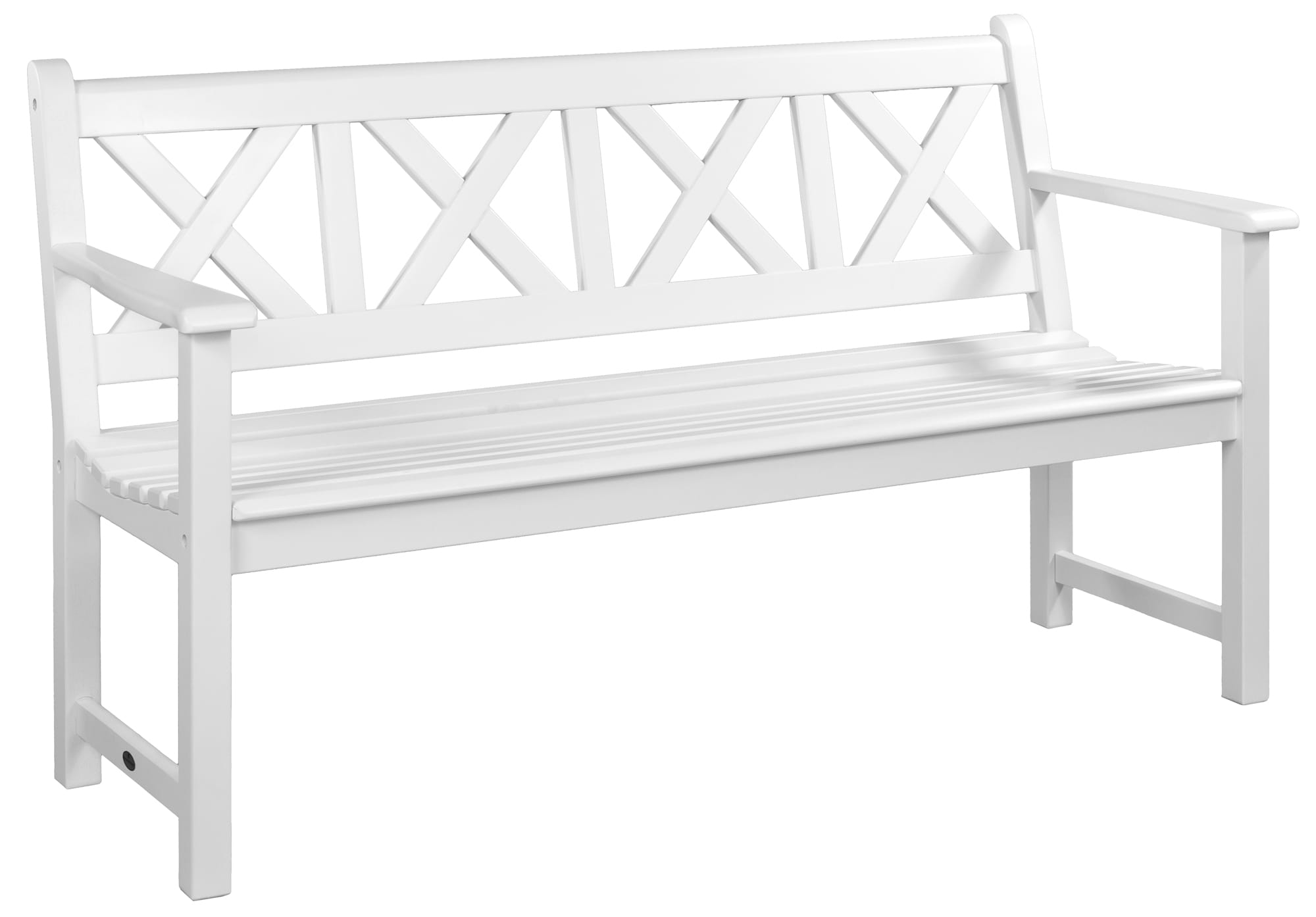 Piękna trzyosobowa ławka, malowana na biały kolor. Doda każdemu ogrodowi świeżego wyglądu. Dzięki najwyższej jakości materiałom, przez wiele lat będzie zdobiła ogród.