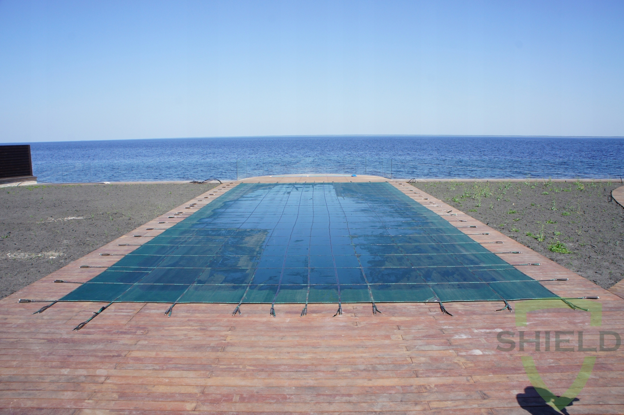 SHIELD to bezramowa, odpowiednia na każdą pogodę osłona basenowa wykonana z zaawansowanego technologicznie materiału o nazwie POLYPROPYLENE MONO FILAMENT. Ta lekka i wytrzymała tkanina sitowa jest w stanie wytrzymać obciążenie rozciągające nawet powyżej 350 kg/ cm. W praktyce te cechy sprawiają, że przykrycie basenu może wytrzymać całkowitą masę do trzech ton.