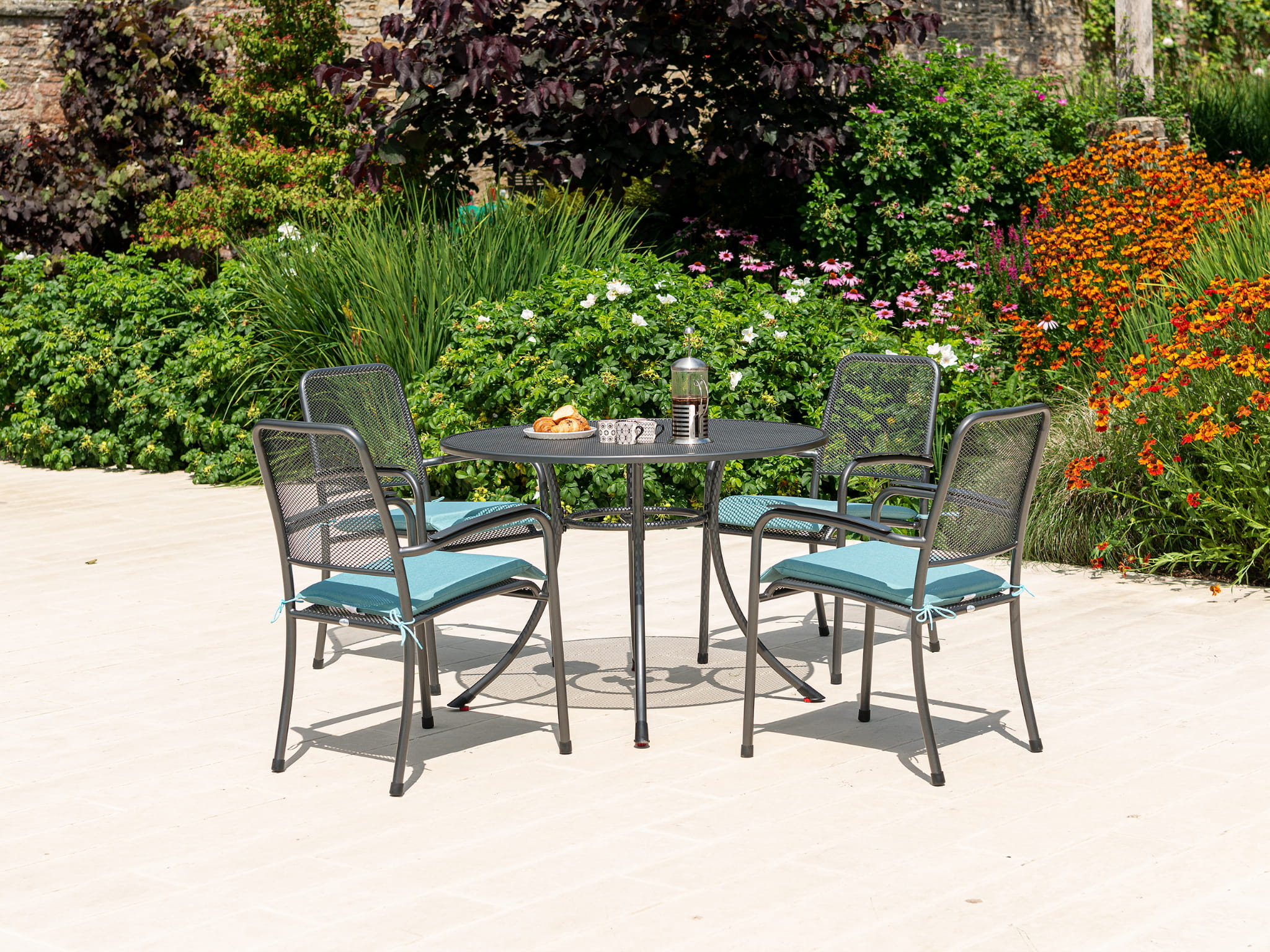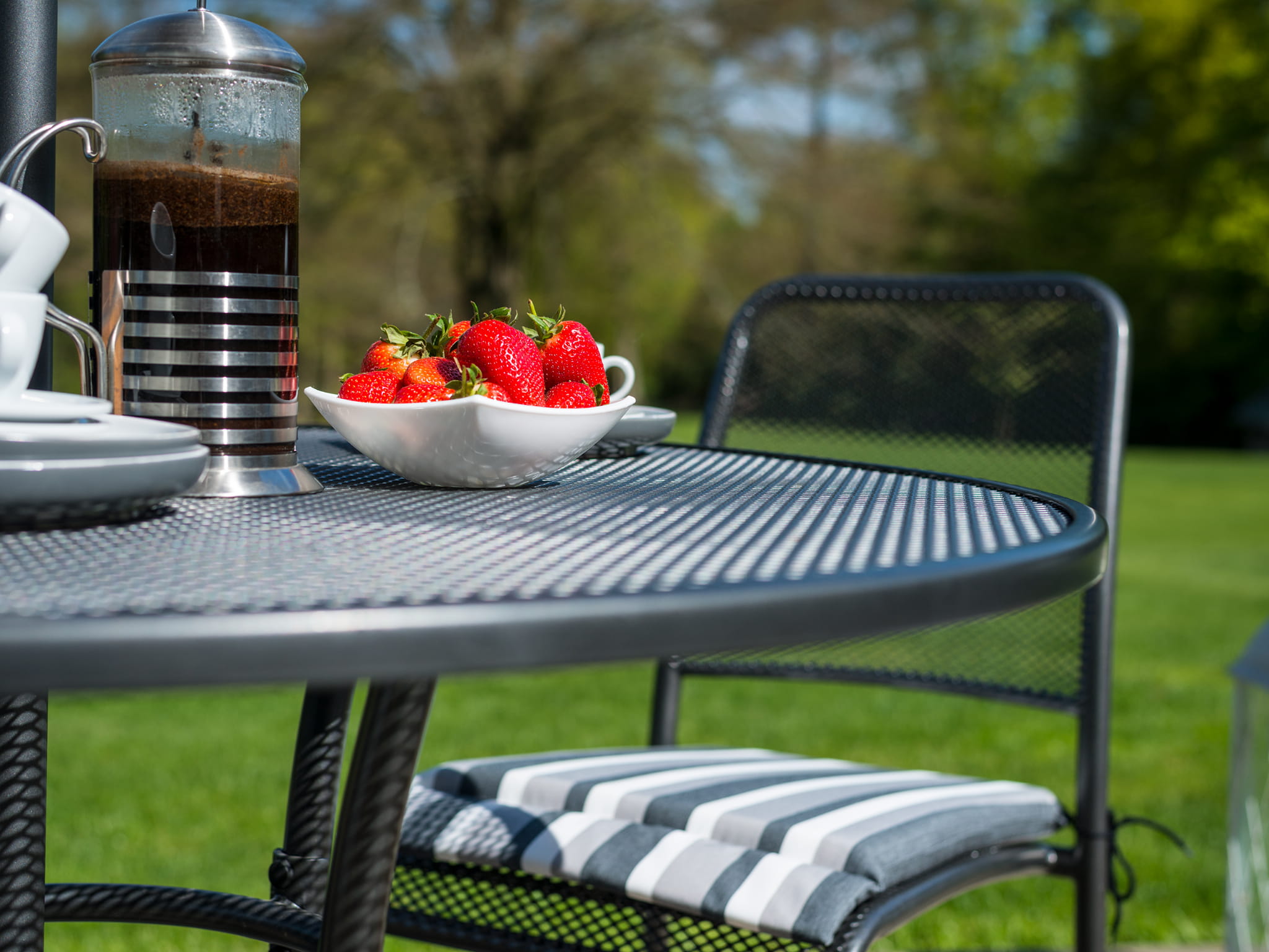 Stół pięknie prezentuje się w ogrodach z dużą ilością zieleni oraz przestrzeniach publicznych. Idealnie komponuje się z krzesłami i fotelami z tej samej kolekcji. Dzięki najwyższej jakości materiałom, przez wiele lat będzie zdobił, każdy taras lub ogród.