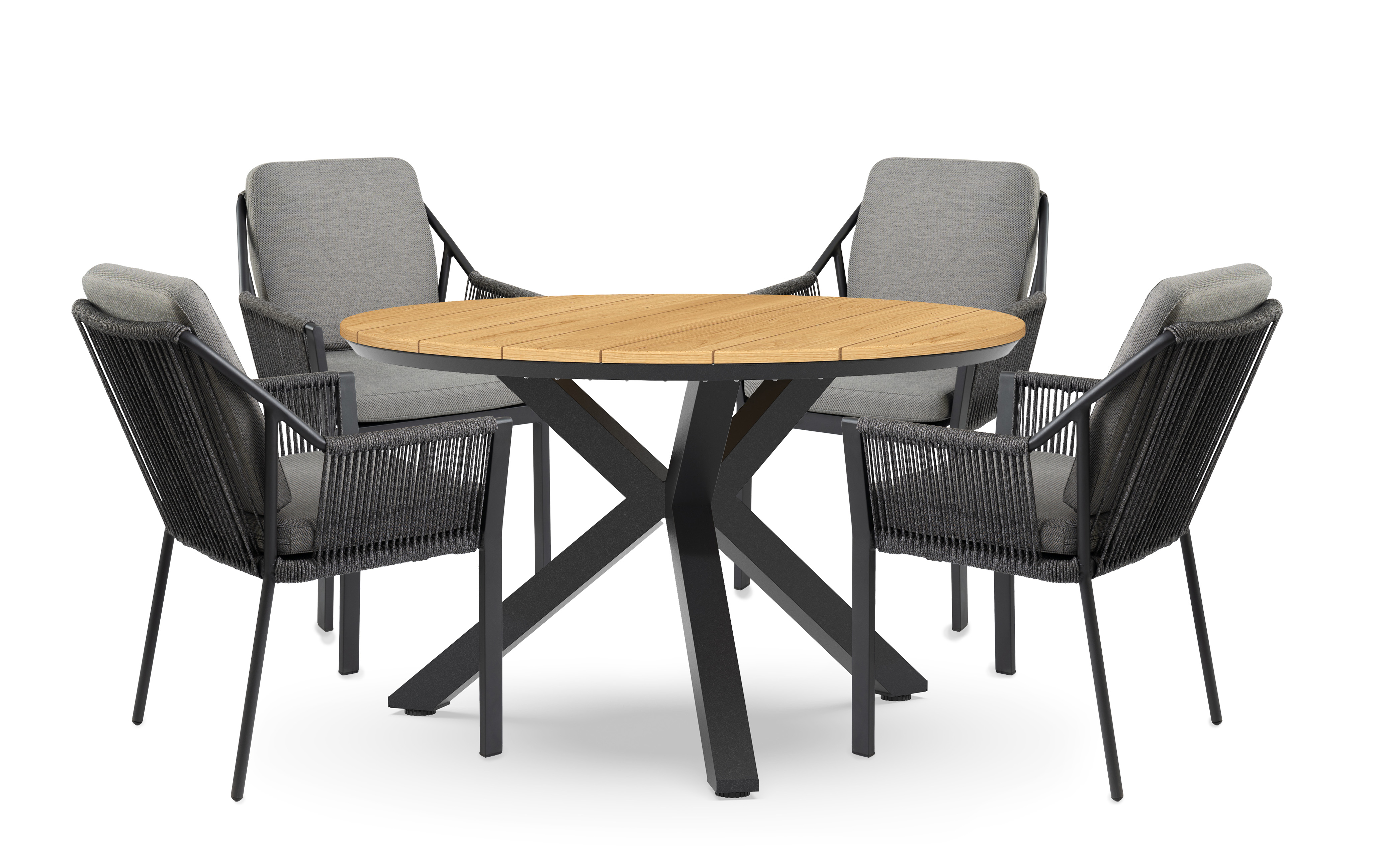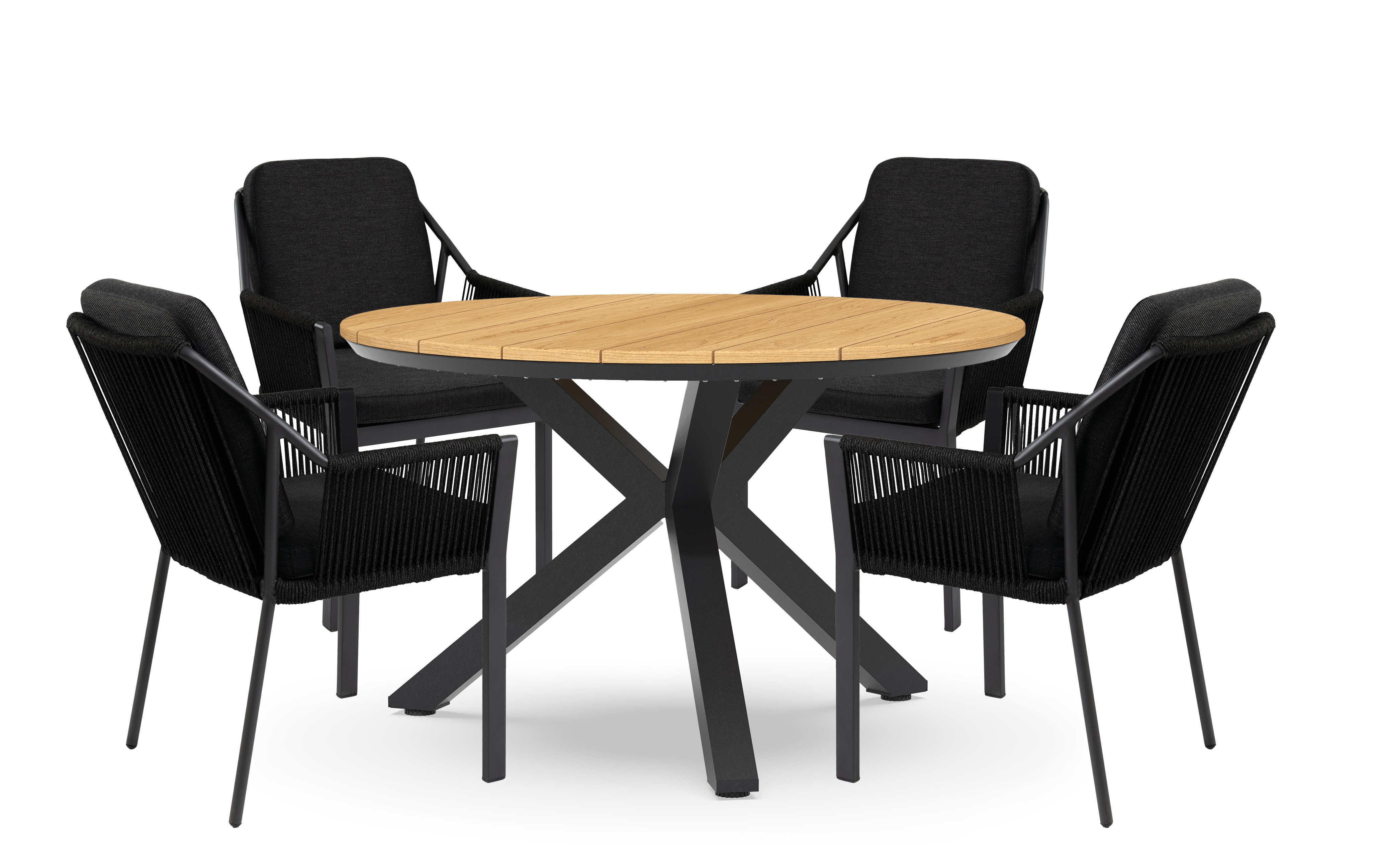 Stół obiadowy Orbital marki Tierra Outdoor to połączenie naturalnej elegancji drewna tekowego z nowoczesnym designem. Okrągły blat o średnicy 120 cm wykonany z wysokiej jakości teaku zapewnia trwałość, odporność na zmienne warunki atmosferyczne oraz ponadczasowy styl, który doskonale komponuje się zarówno z klasycznymi, jak i nowoczesnymi aranżacjami ogrodowymi.